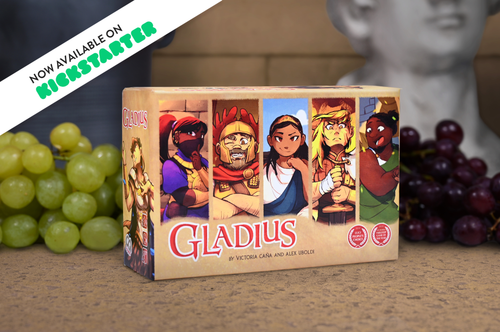 A lot of different factors came together that led to the creation of Gladius. First, my co-designer Alex and I met veteran game designer Stone Librande at the Tribeca Games Festival. He told us that if we want to be game designers, we should try to make a game out of cards. While thinking about what we should make a game about, we found inspiration from two different games. First, Domina, a video game where you run a school of gladiators. Second, Council of Verona, a betting and bluffing game themed around Romeo and Juliet. We love Roman History and liked the idea of spectating the gladiatorial games as opposed to being a gladiator. We also really enjoyed Council of Verona but wanted something a bit heavier. These different forces led to the creation of what we now know as Gladius! We’ve been working on the game for the past three years now and are excited for it to launch on Kickstarter on February 18.
