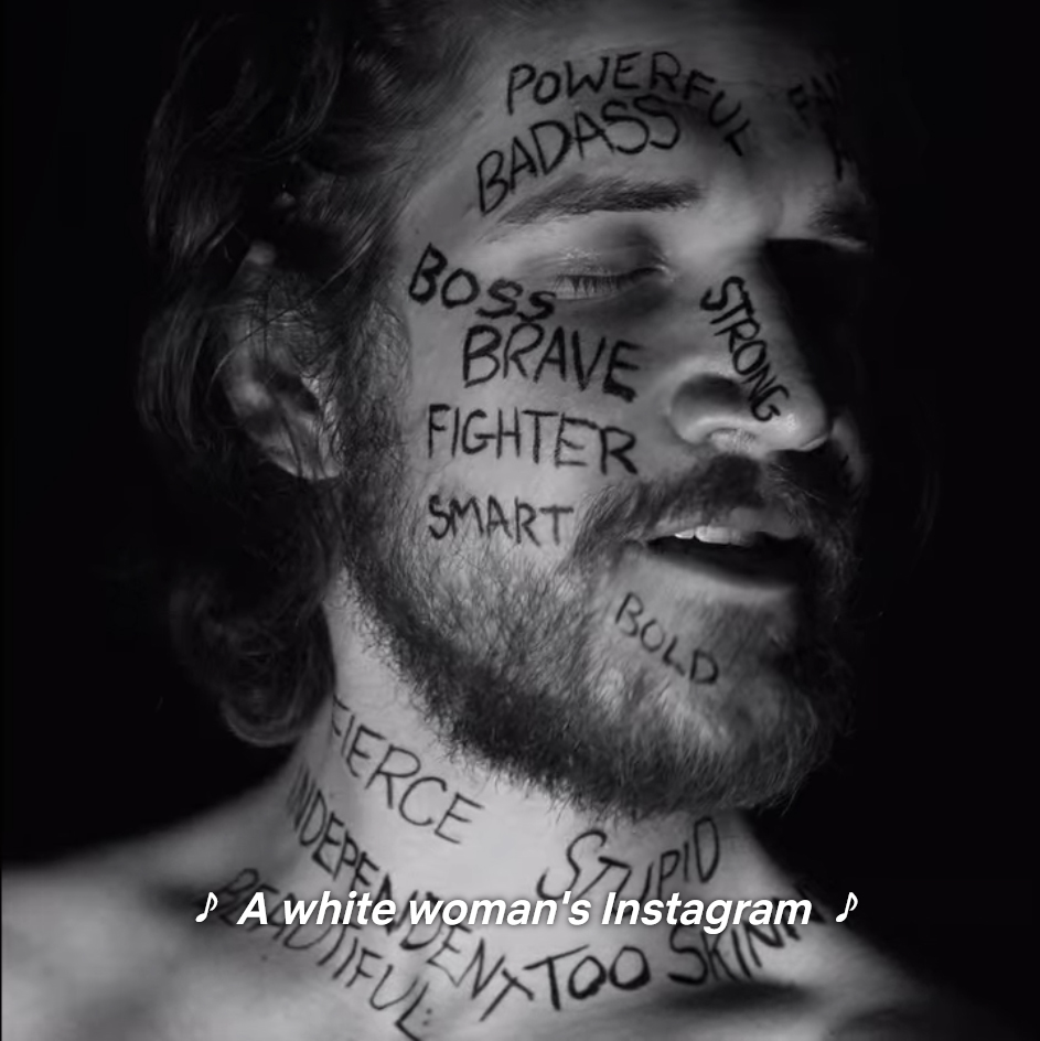 “White Woman’s Instagram” is a great example. Down to the aspect ratio it’s shown in, we see these fragments from the lens and media of Insta. Everything is superficial, artificial: a life staged for the internet. Until the part where this caricature breaks down and talks to their mother. The walls pull away, and we finally get to see the full picture and not just what’s been posed for the internet. It’s a moment of humanity and vulnerability that, however fleetingly, breaks through the idealized image. Soon enough, the internet persona has to return, to reassert itself in order to maintain its existence, its performance for everyone else.