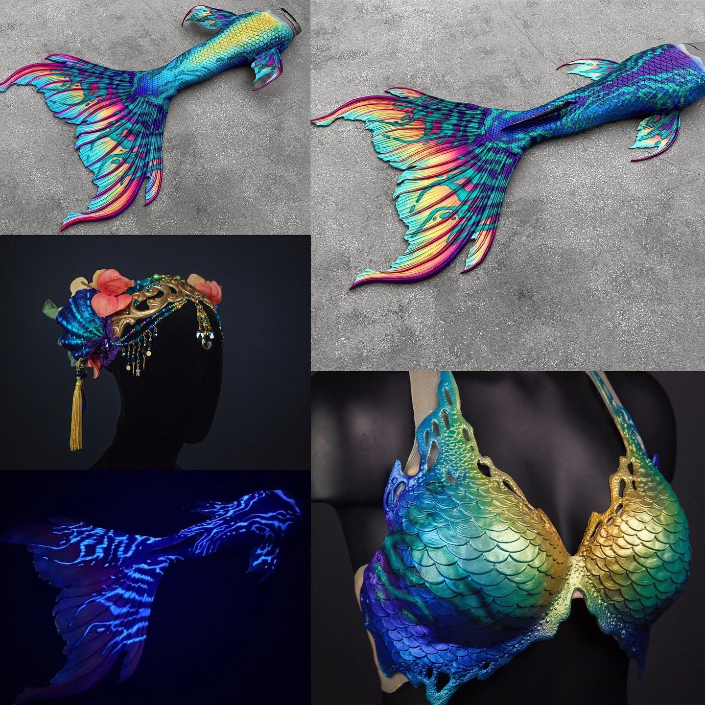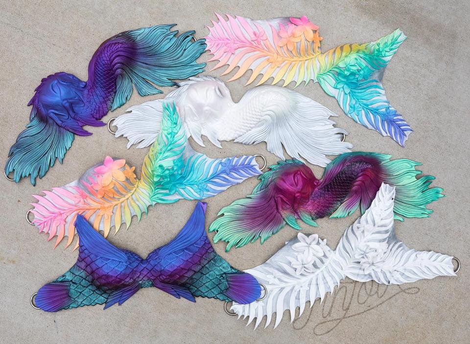 This was the first tail maker I came across, before I even got into mermaiding, and still one of my favorites! Founded by twin sisters Abby and Bryn, Finfolk create a limited number of silicone tails but they are best known for their (relatively) affordable fabric tails, which are designed in a unique way: the artists first sculpt and paint the designs in silicone, then print high-quality photographs directly on the fabric! They also have a huge selection of print-on-demand fashion items including swimwear and leggings featuring their tail designs and more.