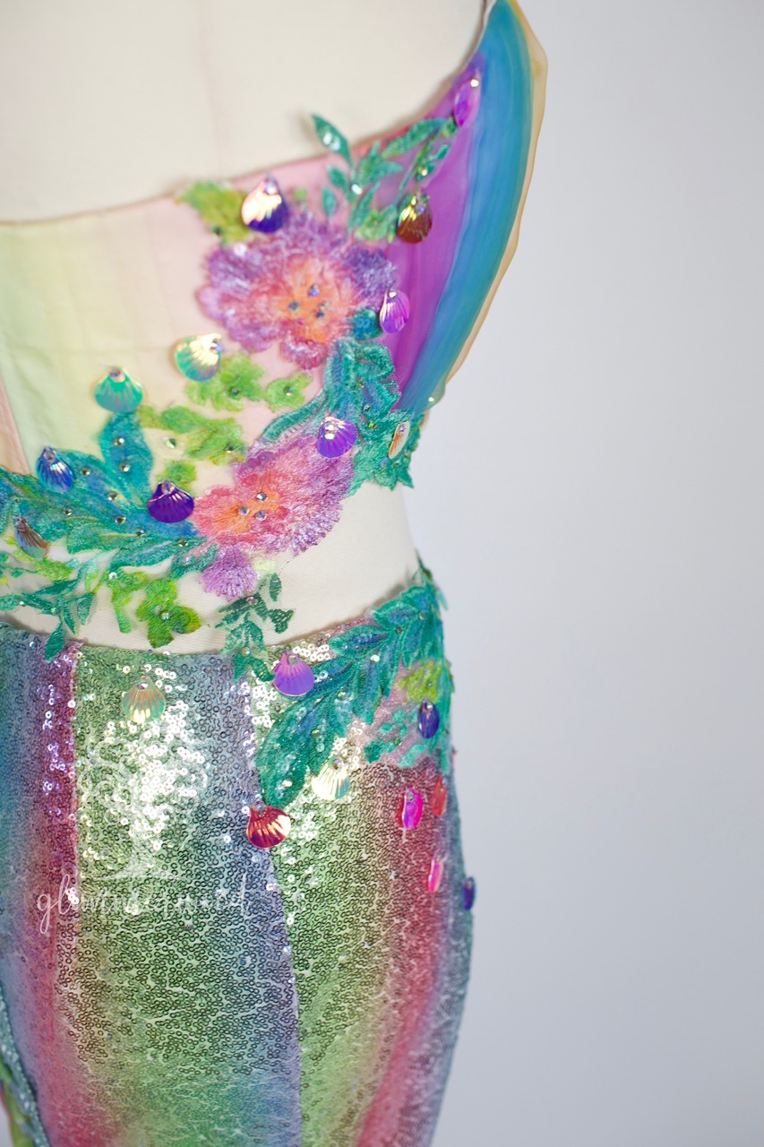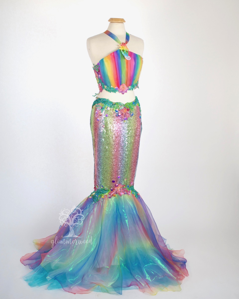 I only discovered this Mermaid Chrissi recently but wow is her work beautiful! This German artist makes beautiful silicone tails in shimmering, iridescent colorways, but her accessories are truly special. Iridescent silicone tops come in scale, shell, and abstract styles, including one that looks like dripping oil. She also offers neck pieces sculpted to look like gills as well as wide, sculpted silicone belts that can be worn like corsets. Furthermore, MerChrissi creates unique, chic dresses strewn with silicone scales.