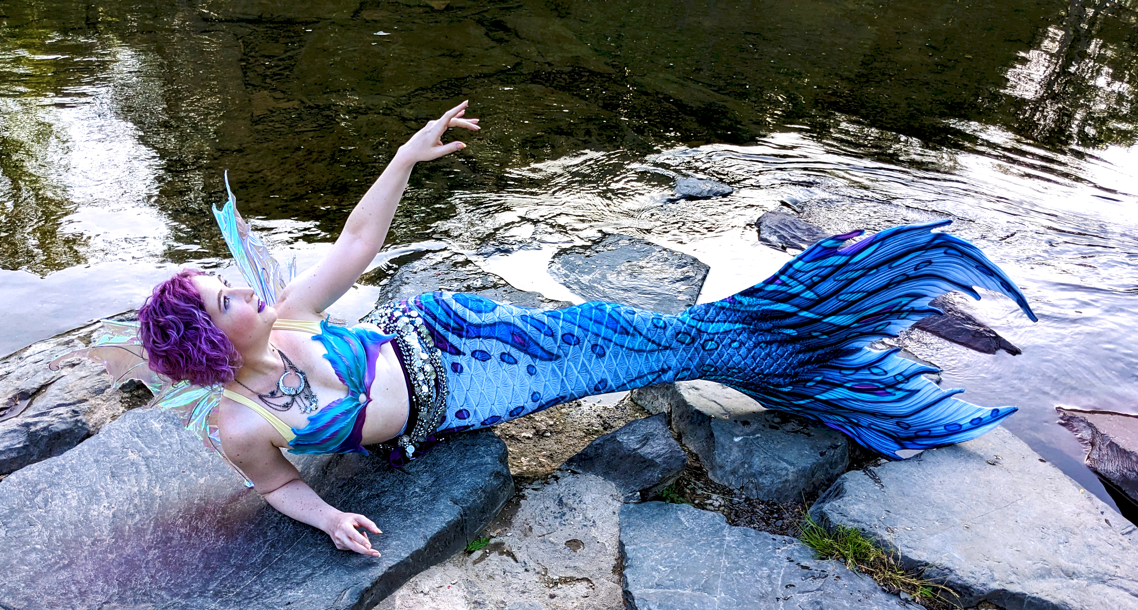 If you’re interested in getting into mermaiding and make sure you are safe before wearing a tail in the water! Swim in only a monofin before adding a tail skin, make sure that your first swim is part of a mermaid class or at the very least that there is an experienced mermaid present, and never swim alone.