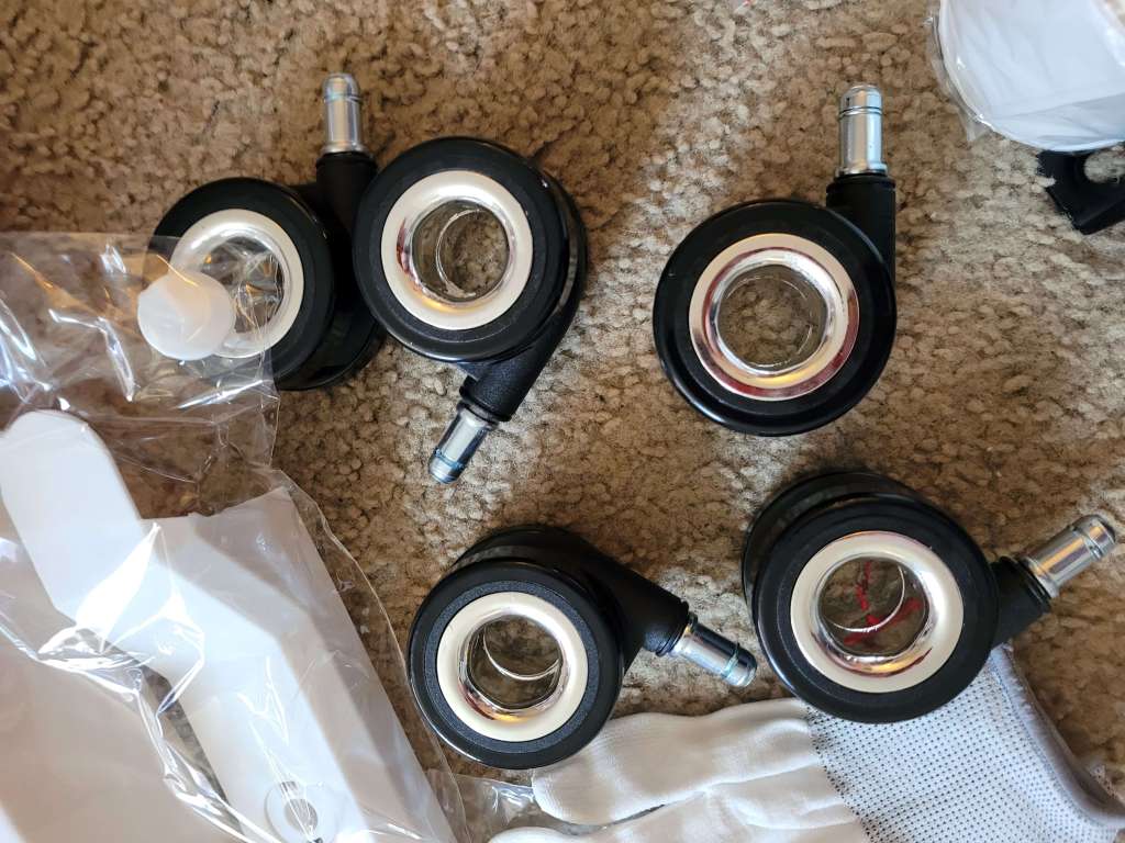 The star shaped base is metal and sturdy but the wheels are the most impressive to me. Most chairs come with some seriously cheap wheels that will break, grab everything, or give out. The wheels that come with this chair feel strong and I don’t believe I will have to replace them anytime soon and I love that.