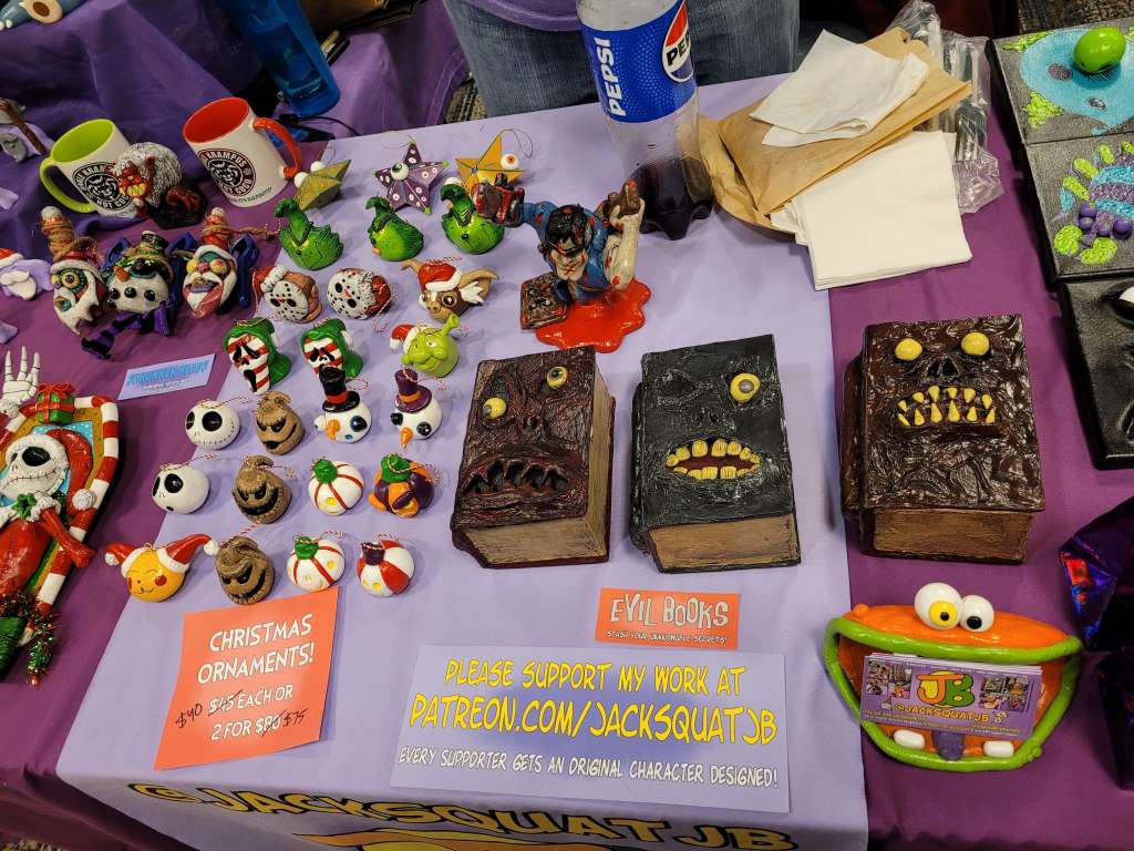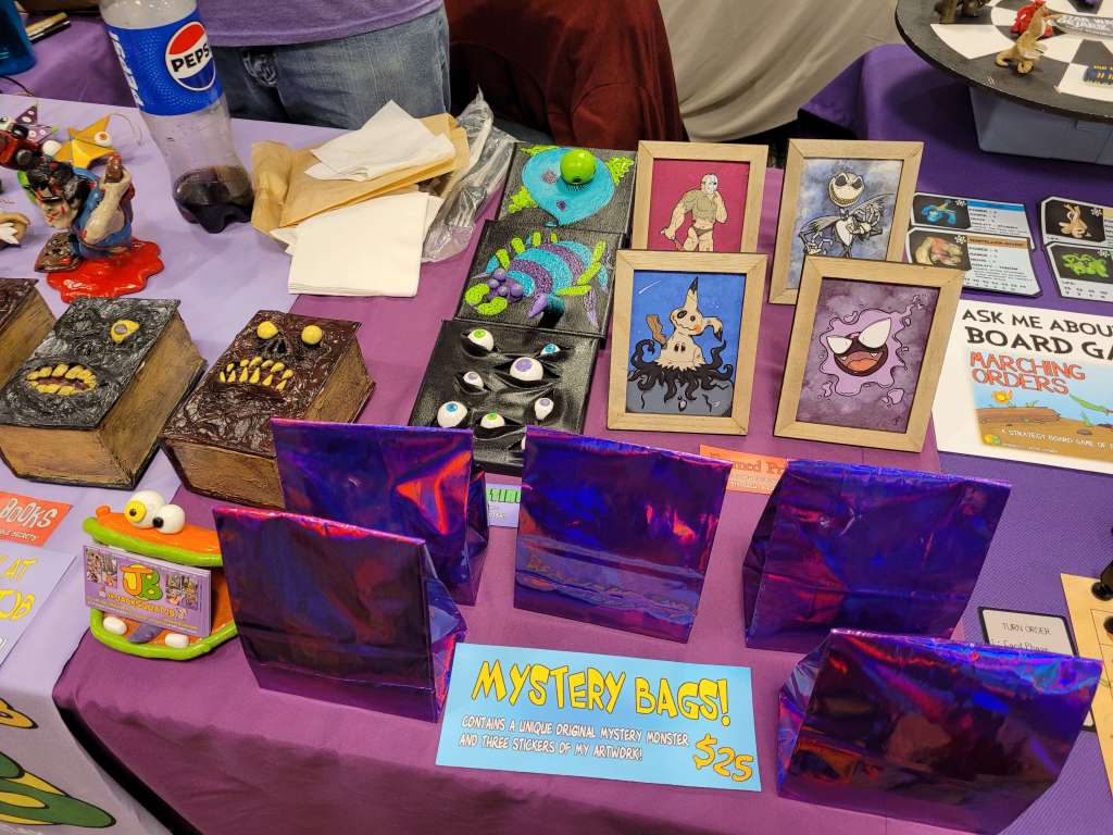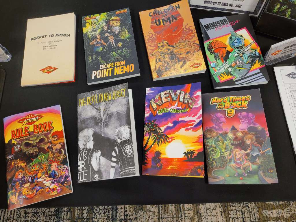 Of course, TTRPGs were available with Mediastream Press with several roleplaying games that look incredible. I can’t wait to try Mansions of the Multiverse & The Demon Age. There is so much passion: I can’t wait to see what they do next. The artwork of Sally Cantirino (comic & RPG artist) is *chefs kiss* and you should follow this lovely lady. 3, 2, 1… Action Games has a simple system that loves the rule of cool. John has a lot of content already, I had to grab ‘The Devil in New Jersey’ and am (im)patiently waiting for The Hotel Exorcist. I got a book for my Lily by Jeri Shepherd. We left this convention with a lot of stuff and empty wallets . This isn’t even all the amazing vendors or people we met.
