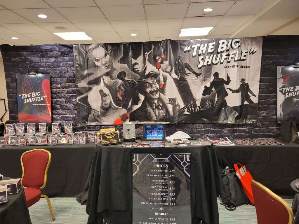 Again, everyone was incredible, but the one thing husband and I agreed on was that we weren’t leaving without The Big Shuffle. The gentlemen knew exactly how to sell an excellent game. This was probably my favorite booth set-up ever. We even got to meet the designer, Ken Oum, head of Previously Pluto (who is working on a sci-fi robot visual novel, yeah, a video game). I would never be able to give the game justice so here is what they say…