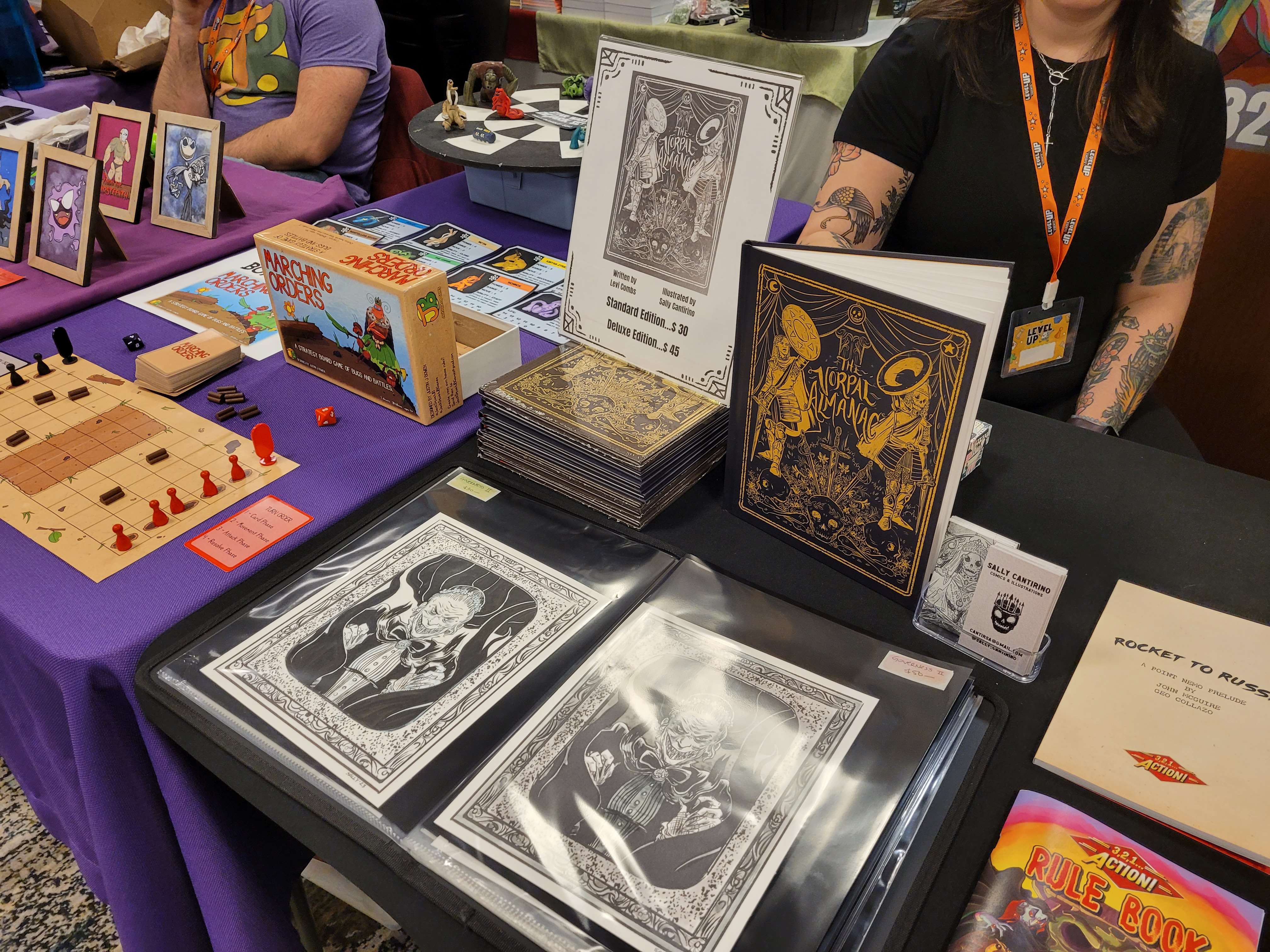 Of course, TTRPGs were available with Mediastream Press with several roleplaying games that look incredible. I can’t wait to try Mansions of the Multiverse & The Demon Age. There is so much passion: I can’t wait to see what they do next. The artwork of Sally Cantirino (comic & RPG artist) is *chefs kiss* and you should follow this lovely lady. 3, 2, 1… Action Games has a simple system that loves the rule of cool. John has a lot of content already, I had to grab ‘The Devil in New Jersey’ and am (im)patiently waiting for The Hotel Exorcist. I got a book for my Lily by Jeri Shepherd. We left this convention with a lot of stuff and empty wallets . This isn’t even all the amazing vendors or people we met.