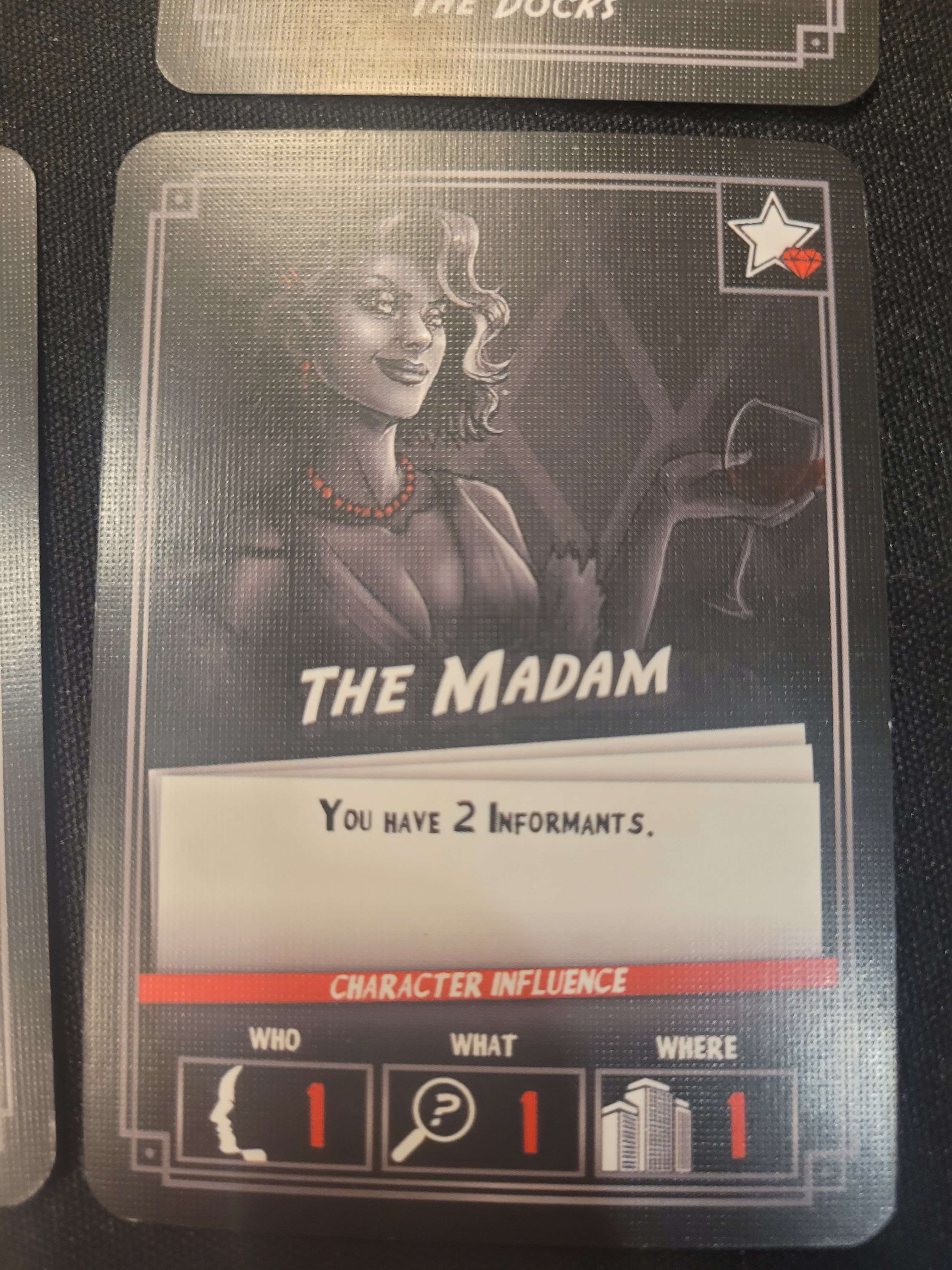 That smoothest line was asking me my name, I said Crymson like I do, then them saying that the cards were also crimson. The Kickstarter deck had red foil edges… and you know a girl likes her red, so I had to get that special set. I loved playing a villain just trying to get her agenda taken care of. Loved the concept and would play with them anytime.